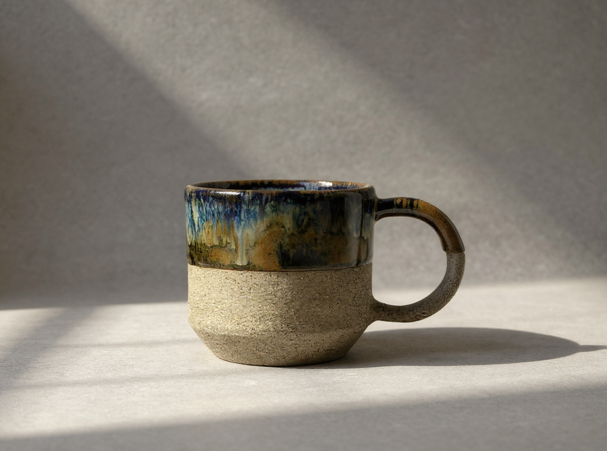 Bu el yapımı seramik kupa, stoneware çamurdan üretilmiş olup 1220 derecede pişirilmiştir.